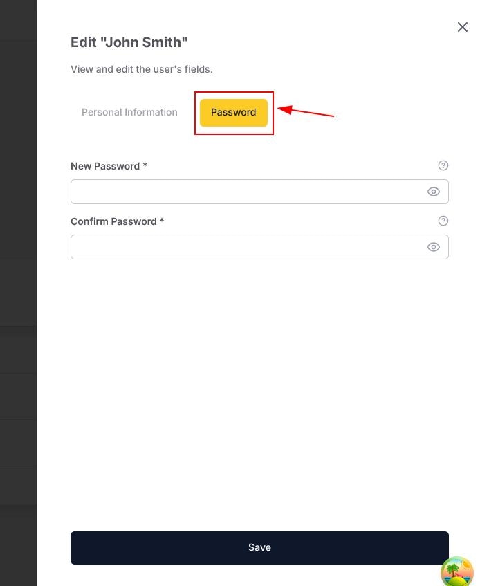 Specify the new password, confirm it, and click Save.